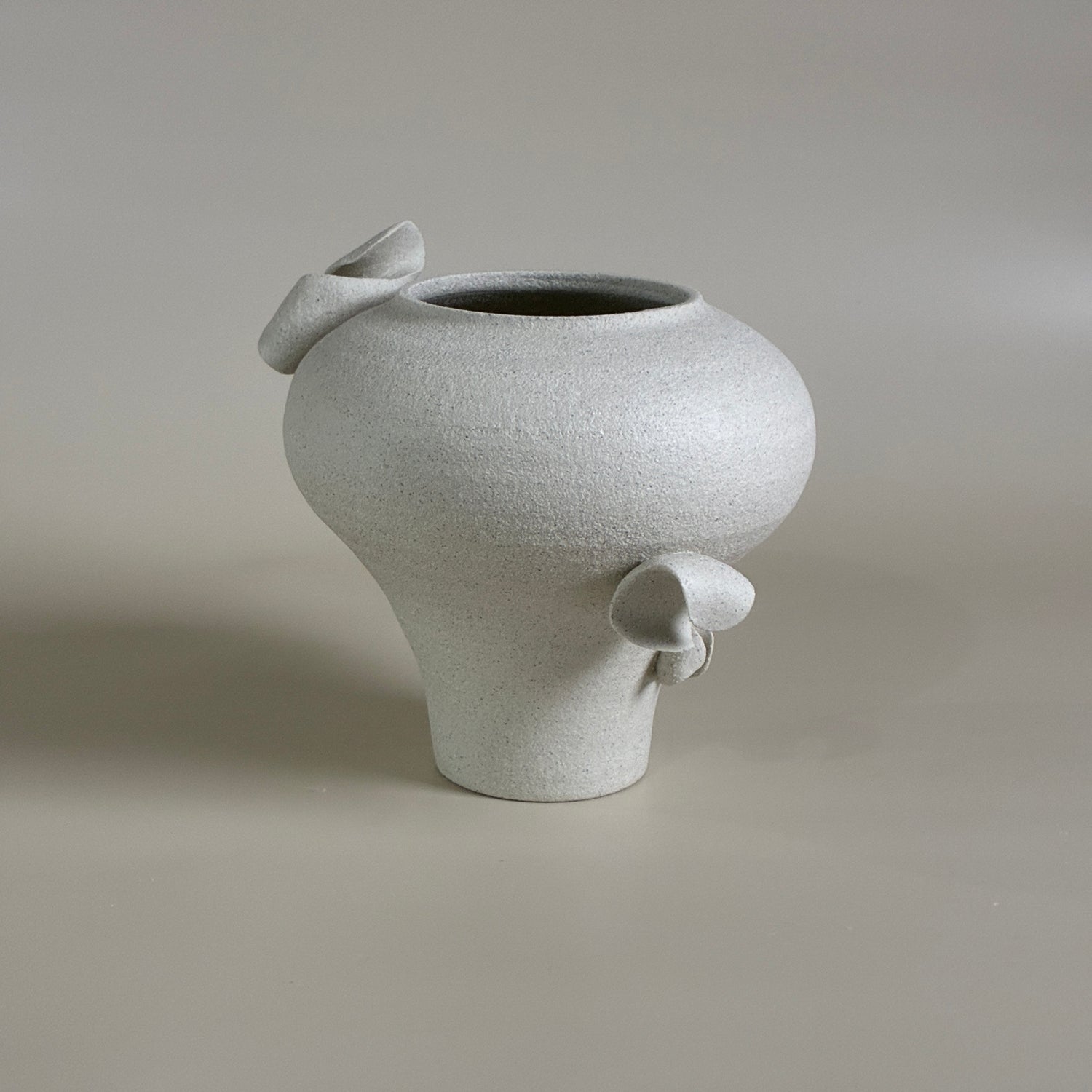 Made in a beautiful textural raku clay body the Artefact collection are functional water tight designs inspired by simplified amphora forms embellished in abstract barnacle/petals to create a striking silhouette even when not holding blooms.
